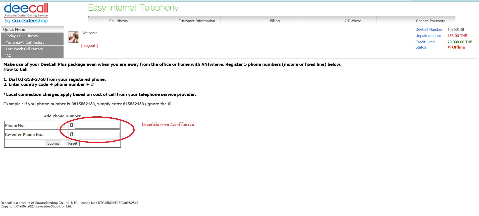 ก่อนที่จะทำการลงApplication จะต้องทำการAdd numberที่ต้องการใช้งานเข้าไปในระบบเสียก่อน